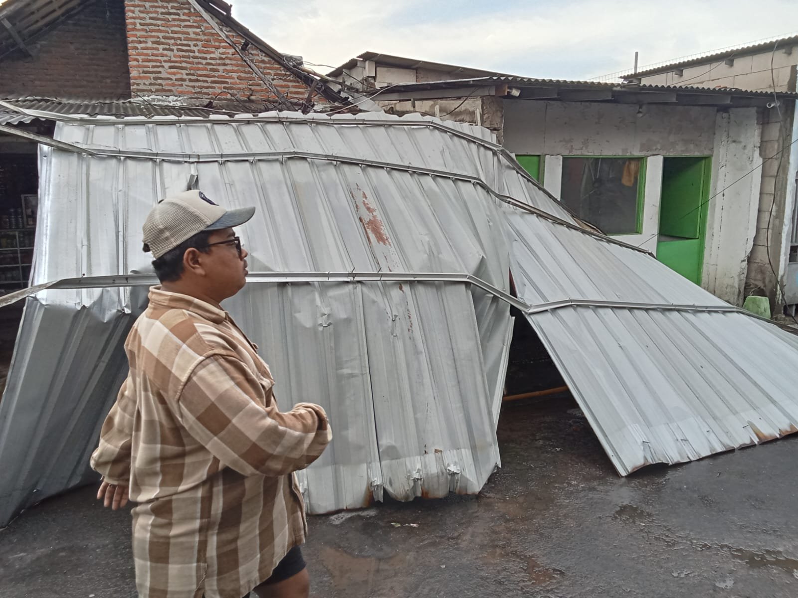 Di lokasi tersebut, sebuah rumah warga mengalami kerusakan serius pada bagian atap kamar mandi dan dapur. Material atap terlepas total akibat tidak kuat menahan kencangnya embusan angin.