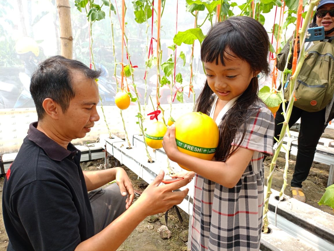 “Anak-anak senang sekali. Mereka bisa belajar mengenali ciri-ciri melon matang langsung dari pohonnya. Varian seperti Sweet Hami The Blues dan Sweet Lavender juga enak,” ujarnya.